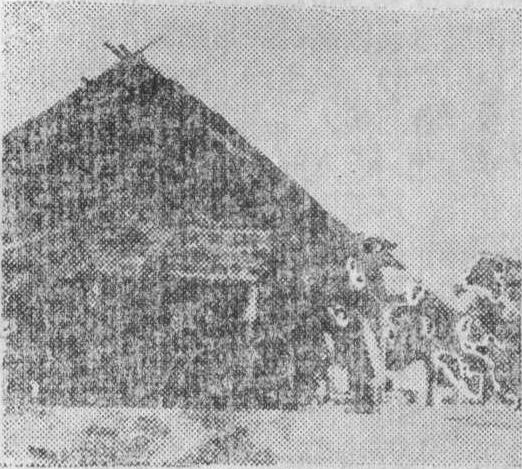 | 释义 | 的着基诺语音译,原意“一家子”,指大房子。旧时基诺族一个父系家族公社(玛莫玛)集体居住的一种干栏式巨大长方体竹楼。通常距地面七至八米, 宽十余米, 长者达三十至四十米。由木架支撑,以树木为梁、柱,楼板和四壁用竹片铺排,顶覆茅草。上层住人,下层无壁,用以堆放工具、什物并作畜厩。按楼上居住布局大致可分两类: (1)进门处或居中设一个或几个火塘,里间或两侧为寝室,住着同一父系的几代人,多达五、六十名的家族公社成员,但各小户往往只有居住位置而无竹板间隔, 小户户数与火塘数毫无关系, 家族公社成员过着共同的经济生活, 反映了典型父系家族公社的特征; (2)进门处设一象征性的家族总火塘, 各小户分别等面积居于有间隔的甬道两侧, 有的多达二十七户计一百二十五人, 甬道内对着各小户设置与其数目相等的小火塘, 各小户有其各自的经济生活, 反映了父系家族公社走向瓦解的趋势。前类二十世纪初尚有,后类一直存在到六十年代。