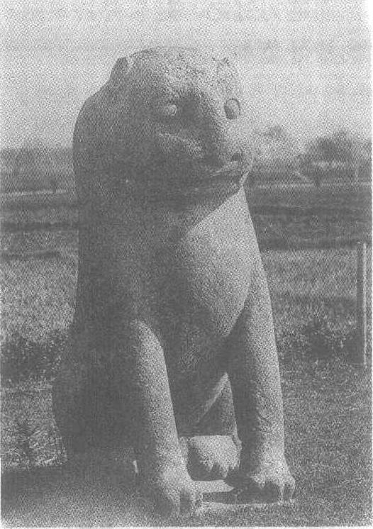 | 释义 | 皇陵石虎明。高230厘米。安徽省凤阳县明皇陵神道的石像生。青白石雕成。虎前腿撑地,后腿蜷曲,蹲坐地上。其缩头耸肩,嘴微张,双目圆睁,望着前方,一副懵懂的样子。此虎雕刻得粗放简练,寥寥数刀,便将一个涉世不深,憨头憨脑的稚虎惟妙惟肖地刻画出来。皇陵是明太祖朱元璋父母的陵墓。建于明洪武二年至十二年(公元1369—1379年)。其神道两侧立华表和石像生28对。