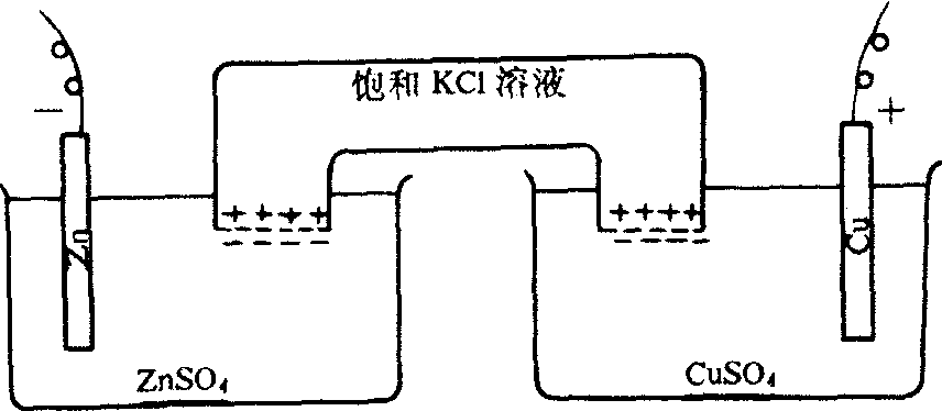 | 释义 | 盐桥yanqiao将饱和的 KCl或NH4NO3(正、负离子迁移数几乎相等)溶液装在倒置的U形管中,跨接于两电解质溶液之间,代替两溶液的直接接触,就构成了盐桥。下面以铜一锌电池为例说明盐桥的作用(见下图):