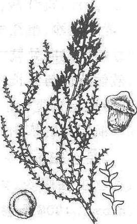 | 释义 | 盐爪爪foliated kalidiumKalidium foliatum(Pall.) Moq.,又称着叶盐爪爪、灰碱柴。藜科,盐爪爪属。多年生盐生半灌木。骆驼主要饲草。分布中国东北、华北、西北等省区。蒙古、俄罗斯,欧洲也有分布。茎直立或斜上,株高20~60 cm,多分枝,老枝灰褐色,新枝带黄白色。叶互生,圆形,基部半抱茎,肉质,灰绿色。穗状花序圆柱状,每一鳞状苞片内着生3小花。胞果圆形,红褐色,密被乳突。种子圆形。极耐盐碱,多生长于草原和荒漠区盐湖外围和盐碱土,以及盐渍化低沙地或盐渍化丘间低地,散生或群集。可为盐湿荒漠群落的优势种。植株肉质多汁,灰分含量高,骆驼喜食,马、羊少量采食。干旱地区可供畜群冬季放牧或作补充饲草。种子磨粉可食用或作精料。