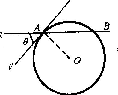 | 释义 | 直线和圆的交角zhixian he yuan dejiaojiao一条直线与一圆相交,过一交点作圆的切线,这条切线与已知直线的夹角.如图,直线l交⊙O于A,B两点,过A点作⊙O的切线l′,l′与l的夹角θ就是直线l与⊙O的交角.