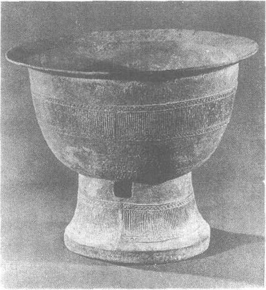 商。盛食器。通高26厘米。口径33.5厘米,腹深16厘米。重4.5公斤。1964年陕西省清涧县张家坬出土。陕西省清涧县文化馆藏。此簋宽平沿,腹下收,高圈足上有三个方形镂孔。腹部和圈足上均饰以联珠纹镶边的直线纹一周。此器为商代晚期之物。其造型和纹饰,在商代青铜器中别具一格。