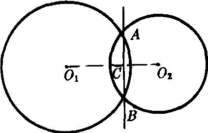 相交两圆的连心线(经过两个圆心的直线)垂直平分两圆的公共弦.如图,⊙O1与⊙O2相交于A,B两点,连心线O1O2交AB于C,则O1O2⊥AB,AC=BC.