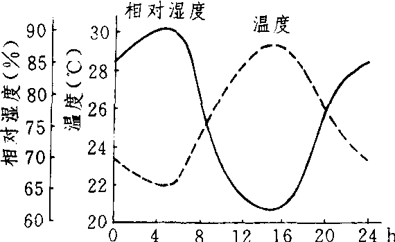 相对湿度日变化 相对湿度是指大气中实际水汽压与该湿度下饱和水汽压之比,它直接表示空气的干燥和潮湿程度。空气中没有水汽,相对湿度为零; 空气中水汽已经饱和,即水分已停止蒸发,这时相对湿度为100%。相对湿度对人们生活、经济建设均有重要意义。例如许多现代化工业生产、科学实验、工厂车间、实验室等都需要较稳定的温度和相对湿度,过干或过湿的条件都会影响产品工艺和质量,影响仪器、设备性能。在高温高湿或低温高湿条件下人们也会感到很不舒服。 (1) 我国年平均相对湿度分布 我国年平均相对湿度的分布形势,总的说来是东南高西北低,从东南到西北相对湿度逐渐降低。年平均相对湿度为50%的等温线大致通过内蒙古二连浩特、银川、甘肃酒泉、青海沱沱河,止于拉萨略东一线。此线东南年平均相对湿度都在50%以上。其中大兴安岭北部、小兴安岭、长白山大部,以及烟台、郑州、西安一线以南地区,年平均相对湿度还在70%以上; 北纬25—300之间的长江中下游地区、四川盆地、贵州大部、东南沿海,以及云南最南部等地区年平均相对湿度在80%以上; 贵州、广东、云南等省的许多台站年平均相对湿度都在85%左右。甘肃西部、青海西北部柴达木盆地、塔里木盆地、吐鲁番盆地以及大约东经90°以西的青藏高原上,年平均相对湿度都在40%以下,是我国空气最干燥的地方。西藏东部和川西、云南横断山区中段和北部是一个相对湿度的相对低值区。同样,在西北内陆地区也并非到处相对湿度都低。新疆中部和北部地区的年平均相对湿度大都在40%以上; 阿尔泰山、北疆西部地区、天山山区的年平均相对湿度甚至在60%左右,海拔高的地方甚至可超过70%。 (2) 地理因子对相对湿度的影响 海陆对相对湿度的影响,主要是因为海洋上水汽丰富,春夏季气温又低于内陆,因而海岛和沿海台站平均相对湿度均高于内陆。 海拔高度对相对湿度的影响比较复杂,即不是简单地一直增加或减少。一般说来,山顶因为气温低、云雾多,相对湿度比山麓要高些。 坡向对相对湿度也有影响,一般是迎风坡湿而背风坡干。 (3) 相对湿度年变化 相对湿度是人们生活中能直接感知的空气干湿程度,因此它的年变化规律也是人们所熟悉的。我们也分区予以介绍。 华北地区相对湿度高峰出现在夏季7、8月,一年中相对湿度最低的季节是春季。 东北地区相对湿度以7—9月最高,相对湿度最低的季节也是春季,但其湿度比华北春季要略高一些。东北地区因冬季严寒,因而相对湿度在12—2月份出现第二个高峰,形成相对湿度两高 (冬、夏)和两低 (春、秋) 的年变化特点。东北区的相对湿度年变化幅度也比华北区小。 长江中下游地区全年各月的相对湿度都在75—80%左右,季节变化也不大。但仍表现出雨季 (春雨梅雨期) 相对湿度较大,旱季 (伏旱、秋季) 相对湿度较小的特点。 华南地区全年相对湿度都较高。尤以春夏雨季中湿度较高,3—8月平均相对湿度在80—86%之间; 晴朗少雨的晚秋和初冬相对湿度较小; 11月至次年1月平均相对湿度均在70%以下。 西南地区相对湿度年变化呈单峰型,高峰在夏 (秋) 雨季。西藏中、西部地区(以拉萨为代表) 因雨季短促,全年以7—9月最湿润; 昆明等纬度较偏南的地区6—10月的平均相对湿度都在80%左右。西南东部的四川盆地和贵州地区,实际上是长江中下游和川西、云南之间的过渡类型。这里相对湿度的年变化较小,四川、贵州全年各月相对湿度都在75—85%之间,以春季相对较低,秋季相对较高。 我国西北干旱地区的相对湿度年变化是很特殊的,大部分地区都是严寒的冬季相对湿度最大,而夏季则因干旱高温相对湿度最小; 或者是因为夏季有少量水汽供应而使相对湿度出现一个小小的高峰。 (4) 相对湿度日变化 相对湿度日变化就是相对湿度在一天之内的变化规律。一般说来,大陆上白天相对湿度低而夜间相对湿度高,其中又以午后相对湿度最低而清晨相对湿度最高。海上相对湿度日变化规律和陆地上相似,但日变化曲线振幅较小。 相对湿度指在某一温度条件下,空气中所含有的水汽量与同温度条件下所能达到的饱和水汽量的百分比。湖南全年平均相对湿度的分布,各地差异较小,一般在75~85%之间,山地略多天平原,如安化、桂东、南岳等地高达81~85%。全省各地相对湿度的季节变化,一般是以春季最大,冬季次之,夏秋季最小。春季(4月)相对湿度大多在80~85%之间; 冬季(1月)相对湿度在75~82%之间; 除湘西地区,夏季(7月)相对湿度都在70~80%之间; 秋季(10月)相对湿度比夏季稍大; 相对湿度的极端最小多出现在冬季的1月或12月,全省各地都出现过20%以下的最小值,1958年11月24日16时通道侗族自治县相对湿度竞只有1%。 相对湿度甘肃省年平均相对湿度在35%~74%之间。河西在35%~53%之间;河东在51%~74%之间。分布趋势大致自东南向西北减少。这种空间分布趋势,揭示了我省东南部潮湿,西北部干燥的基本气候特征。相对湿度的季节性变化也较大,春季全省一般为30%~66%;夏季为40%~80%;秋季为30%~80%; 冬季为40%~66%。 相对湿度物理、气象概念。空气中实际所含水蒸气密度和同温度下饱和水蒸气密度的百分率值。相对湿度与人体健康、设备保养、动植物生长发育有密切关系。人体最适宜的相对湿度:25℃时,40%~50%;18℃时,30%~40%。北京地区冬春季白天相对湿度20%左右,易口唇干裂、鼻孔流血、喉头燥