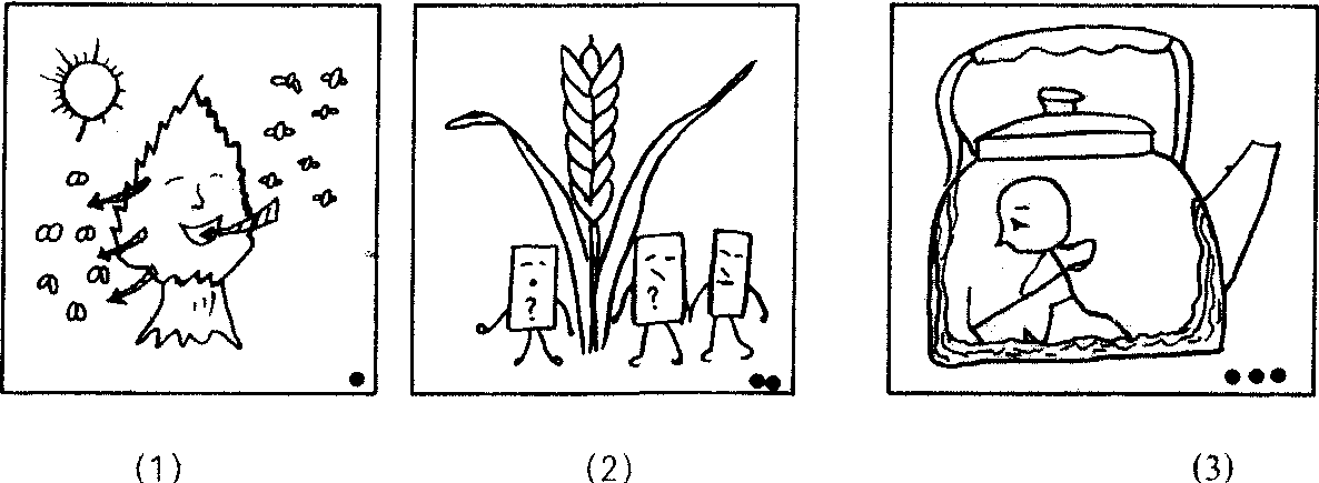 例如,可以按图示的内容,提出下述问题: ❶绿色植物在阳光下吸收和放出了什么气体? ❷植物生长所必需的三大元素是什么? ❸水垢是怎样除去的? ❹为什么说维尼纶是棉花的竞争者? ❺ 最轻的不爆燃的气体是什么?同一图片对不同年级可以提出不同深度的问题,例如图 (1): 问初中同学: 绿色植物在日光下制造了什么气体? 问高一同学: 请写出绿色植物在阳光下发生反应的方程式,并回答这一作用的意义。 问高二或高三同学: (除了问以上问题外,还可以加问) 我们为什么要提倡植树造林?近几年来本地区的绿化成绩是什么? 在实际中根据所学知识的不同,可以设计出不同的图片,提出不同的问题,这是一种很有趣味的智力游戏。 |