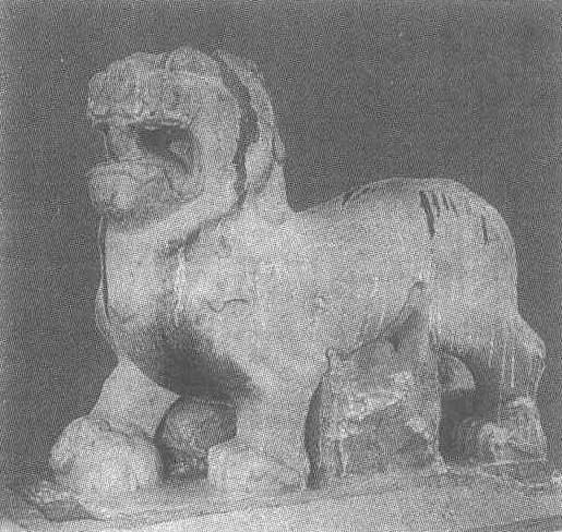 | 释义 | 石狮(1对)东汉建和元年(公元147年)。两只均高124厘米。1962年山东省嘉祥城武宅山发现,原为武氏墓群石刻,现藏山东省嘉祥县文物管理所。石狮挺颈仰首,塌腰耸臀,怒目圆睁,张开血盆大口,舌尖高卷作驻足嘶吼状。据与此同时出土的石阙铭:“建和元年……使石工孟孚、李弟卯造此阙,直(值)钱十五万,孙宗做师(狮)子,直(值)四万……”可知,这对石狮为孙宗所雕。作者着力于头、足的刻画,尽管整体比例不甚匀称,但狮子的凶猛气势表现得十分充分。