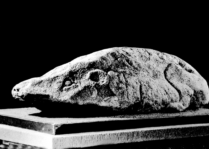 西汉霍去病墓前石刻。元狩六年(前117)刻,砂石质。长1.63米,宽0.63米,高0.56米。蹲伏状,三角形眼,小耳,形似野猪。现藏茂陵博物馆。