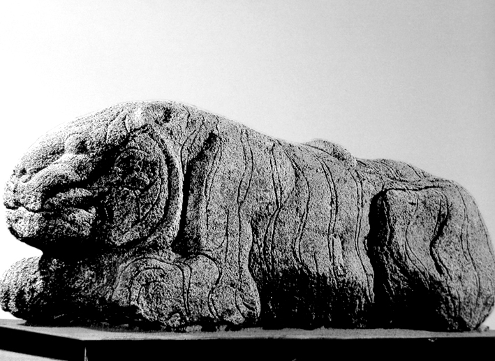 | 释义 | 石虎295—349十六国时期后赵皇帝。字季龙,上党武乡 (今山西榆社北) 羯人。石勒侄。早年丧父孤,由石勒母带大。早在石勒投靠前赵政权时,石虎就出力不少。石勒称赵王后,石虎为单于元辅、都督禁卫诸军事,常当专征之任,立下了不少汗马功劳。石勒称帝后,石虎为太尉、尚书令、中山王。但因未封大单于而十分怨恨。《晋书·石季龙载记》记石虎曾对其子石邃说: “吾躬当矢石二十余年,……克殄十有三州,成大赵之业者,我也,大单于之望,实在于我,而授黄吻婢儿,每一忆此,令人不复能寝食。待主上晏驾之后,不足复留种也。” 公元333年,石勒一死,石虎就杀劝石勒除石虎的程遐、徐光,自任丞相,大单于。334年,废杀石弘和石勒诸子。同年十一月,称赵天王,335年称帝,改元建武,又迁都于邺 (河北临漳西南)。335—349年在位,共十四年。在位期间,军役繁兴,军旅不息,如联合前燕夹攻段氏辽政权,又征讨前燕、前凉,弄得民不堪命。由于阶级矛盾和民族矛盾的激化,石虎又用严刑酷法予以镇压,还大兴土木,征调频仍。345年曾发二十六万人兴修洛阳宫,347年发十六万人筑华林苑,日夜继作,死者数万。还曾征民女三万余人配东宫及公侯,令荆、楚、杨、徐之民大骇。后宫盈十万人。是后赵著名的暴君。但继承石勒崇尚文化,曾令郡国立五经博士,罗致和优待汉族地主士人。宣扬儒教、佛法。349年四月,石虎死,诸子发生争位残杀。谥武帝。庙号太祖,葬显原陵。(今地不可考) 石虎295—349十六国时期后赵国君(334—349)。字季龙。羯族,石勒侄。石勒在位时使其掌重兵专征,勒死.废其子弘自立,迁都于邺(今河北临漳西南)。在位时与东晋、前燕、前凉等交战,穷兵黩武,强迫人民当兵。且为政残暴,曾发诸州26万人修洛阳宫,又以百姓妻女3万人充后宫,致使民不聊生。末年梁犊等起义,参加者达数10万人。身死不久,后赵即亡。 石虎shihu西汉霍去病墓前石刻。元狩六年(前117)刻,圆雕。长220厘米,宽84厘米。石虎呈伏卧状,尾巴卷挺在背上,在虎的面颊和躯体处运用了稀疏而流畅的阴刻线条,表现出周身斑纹。现藏茂陵博物馆。