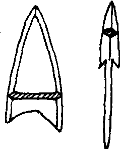 | 释义 | 石镞即石制的箭头。是将石料先打制成坯,经过磨制十分锐利,可以绑缚于杆端以弓发射,是石器时代和青铜器时代初期的狩猎工具或武器。 石镞青铜时代工具。1960年在吉林省吉林市郊区白山乡两半山遗址采集。计两件。现藏吉林市博物馆。皆为深灰色页岩磨制。一为无梃燕翼形,一为有梃燕翼形。前者平视尾部似燕鸟之双翼,镞身微凹形成血槽,通长4厘米;后者镞身起脊,断面呈菱形,尾部形成双翼,梃呈圆柱状,通长9厘米。