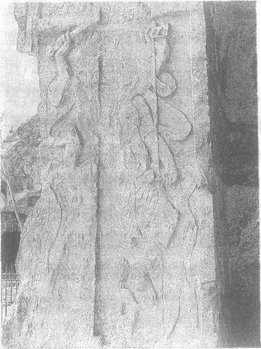 | 释义 | 石雕大梵天像北魏。高250厘米。河南省洛阳市龙门石窟宾阳中洞甬道南侧造像。大梵天四头四臂,左侧上手提三股金刚杵于头旁,下手提一圆环状物于胯际。右侧上手举独股金刚杵至头顶,下手握剑于体旁。身披飘带璎珞,下着战裙,威风凛凛地观察着四方情况,颇具威慑力。“大梵天”即“梵天”,是婆罗门教、印度教的创造之神,与湿婆,毗湿奴并称为二教的三大神。据《摩奴法典》载,梵天出自“金胎” (梵卵),把卵壳分成两半,创造了天和地,然后创造十个生主,由他们完成创造工作。据说梵天原有五个头,后被湿婆毁去一个,剩下的四个头面向四方,四手分别拿着“吠陀”、经典、莲花、匙子、念珠或钵。他虽然是个创造神,但因为魔鬼、灾难等也是他创造的,所以在三大神中的地位并不高,崇拜者很少。佛教产生后,被吸收为护法神,为释迦牟尼的右胁侍,与帝释天相对。