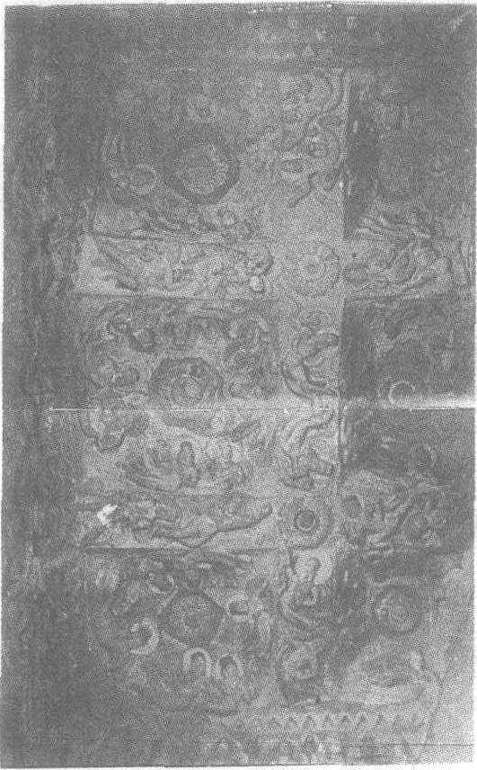| 释义 | 石雕平棊藻井北魏。山西省大同市云冈石窟第7窟后室。藻井为六格斗四式,每格中心均作团形莲瓣图案,四周聚集着众多飞天。飞天斜披络𤥿,帔巾飘逸,长裙迎风贴于腿上,富于轻纱般的质感,他们正以各种姿态在盘旋翱翔,有的手持莲蕾,有的托宝珠,舒展大方,姿态十分活泼,脸上无不面带笑容。这是第7窟最为精彩的雕刻。