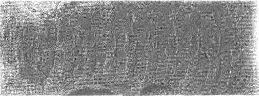 北魏。长33厘米,供养人高19厘米。河南省洛阳市龙门石窟路洞西壁中部浮雕。30余个供养人头挽高髻,身穿交领宽袖曳地长袍,纵向一字形排开,双手捧长梗莲于胸前,上身微微后仰,缓缓徐行,节奏整齐,充满韵律感。整个画面弥漫着肃穆、庄严、虔诚的宗教气氛,感染力十分强烈。