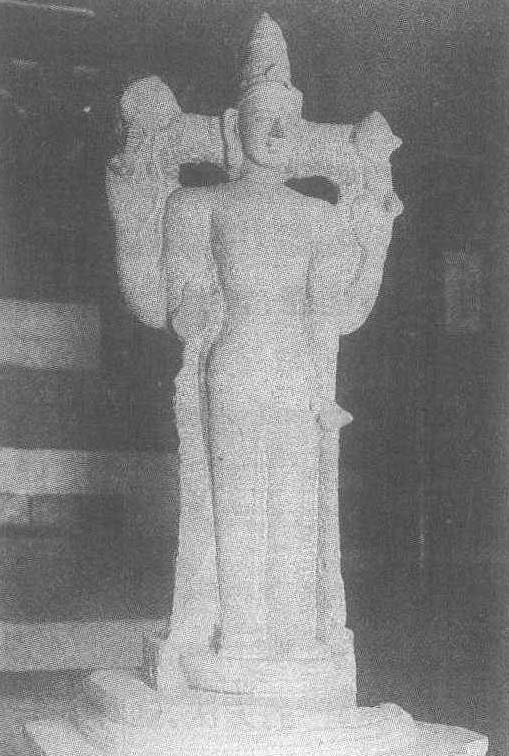 | 释义 | 石雕毗湿奴神像元。通高143厘米。1934年福建省泉州市南校场出土。福建省泉州市海外交通史博物馆藏。辉绿岩质。神像头戴塔尖状高冠,昂首挺胸,伫立于半月形台座上。四臂分别举法螺、宝轮于肩际。双耳垂肩,深目高鼻,身材修长矫健,外来形象十分明显。可谓中外文化融合的产物。“毗湿奴”是印度教三大神祇之一。