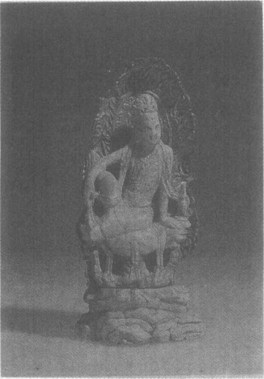 石雕水月观音像1978年云南省大理市崇圣寺三塔出土,云南省博物馆藏。北宋雕刻艺术品。高15.5厘米。石色纯白,观音高髻,戴花蔓冠,面部丰腴,神情安祥。左腿蟠坐,右膝拱起,上身稍前倾,目光前视,作观水中月之态。石雕中观音像虽高不足10厘米,但雕刻细致入微,且充分表现了观音雍容慈祥的神态,身后有银质背光,制作工艺精湛,与观音巧妙组合,统一和谐,精美异常。 |