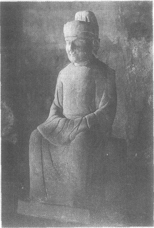 | 释义 | 石雕王建坐像五代前蜀光天元年(公元918年)。通高86厘米。四川省成都市西郊王建永陵石雕像。王建头戴双翅翻束于顶部的幞头,身着圆领长袖大袍,腰系玉带,袖手端坐于石几上。其粗眉深目,隆鼻高颧,薄唇大耳,相貌英俊庄严。本为黑幞、赤袍、肉面的彩妆,因经年历久,色彩已斑驳脱落,只留有残痕。这是目前所知的最早的人物肖像雕刻。王建,(公元847—918年),唐末从杜审权镇压农民起义军,后为壁州(今四川通江)刺史。天复三年(公元903年)被唐封为蜀王,后梁开平元年(公元907年),在成都自立为帝,国号蜀,史称前蜀。