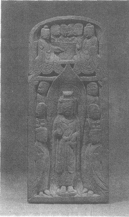 | 释义 | 石雕造像碑北魏建明二年(公元531年)。高48厘米,宽21厘米。宁夏回族自治区固原县出土。宁夏回族自治区固原县博物馆藏。造像碑分上、下两段:上段的两尊佛并坐长椅上,呈“释迦多宝相”。椅背上方刻四个小佛头,两两相对而视;下段中间雕一菩萨,头戴宝冠,袒上身,披通肩长带、下穿羊肠大裙,手作“施无畏印”,立于莲花座上。刻满火焰的背光左右两侧各刻三尊小佛,底下的一对作相对而视状,上边的两对作相背状。线条简洁,人物表情生动。碑侧及背刻隶书铭文:“使持节假镇西将军镇军将军西征都督……敬造石像二区,建明二年二月十七日。”此尊造像碑中菩萨的特征是面容丰腴,体躯上短下长,由北魏中期以后的“面如恨削”窠臼中脱身而出,表现了承上启下的艺术趋势,是北朝造像中具有代表性的作品。