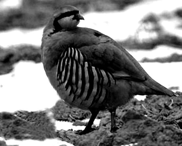 石鸡鸡形目雉科。体重250多克,体长近300毫米。上背棕褐色,下背至尾上复羽灰色,头侧和喉部有一黑色项圈。胸灰色,下体棕黄色。脚、趾珊瑚红色,爪黑色。分布于低山干燥山谷及丘陵。飞行迅速但不持久,多以植物种子、浆果、嫩枝及昆虫为食。 |