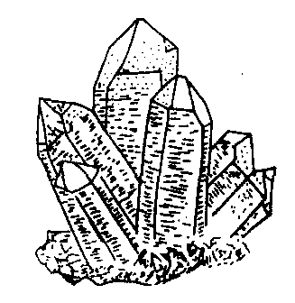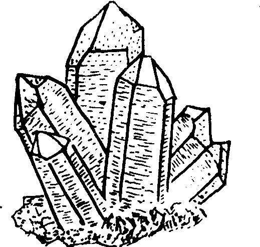 ❹晶簇,由生长在岩石的裂隙或空洞中的许多单晶体所组成的簇状集合体。它们一端固着于共同的基底上,另一端自由发育而具有良好的晶形。晶簇可以由单一的同种矿物晶体组成,也可由几种不同矿物的晶体组成,如石英晶簇(图2)、方解石晶簇等,工业上利用的压电水晶、冰洲石等矿物原料常呈晶簇状产出: