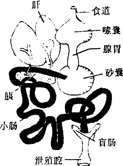 | 释义 | 砂囊shanang(1)脊椎动物鸟类的胃分为前胃和砂囊两部分。砂囊又称“肌胃”。它前接前胃,后通小肠。砂囊常具有很厚的肌肉壁,胃腔较小。凡食谷类,坚硬果实以及杂食性的鸟类,其砂囊内面一般都有一层角质皮,囊内贮有吞入的砂石,用以代替牙齿磨碎食物,故称砂囊。但食肉性的鸟类(如鹰等),砂囊壁较薄,且无角质衬里。(2)无脊椎动物蚯蚓的胃壁肌肉也很厚,并有很强收缩力,能磨碎食物,故也称砂囊。(