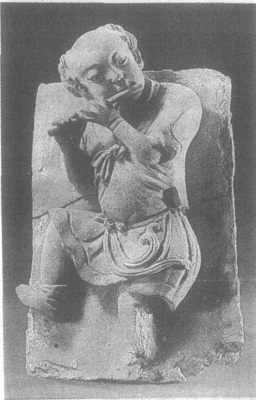 | 释义 | 砖雕吹笛舞俑元。高35厘米。1973年河南省焦作市郊西冯封村出土。河南省博物馆藏。童俑头戴双总髻假大头,上穿齐胸短衫,披十字彩带并于胸前打花结作装饰,下着短裙,足蹬软靴。右脚高抬,双手捧笛,歪头跳跃吹奏,形象颇为生动可爱。这是民间游行舞队中的山神童子的形象。据文献记载,早在宋代,民间的各村庄就都有自己的舞队(又叫“社火”),每逢节日进行表演,与至今仍流传在北方民间的“花会”差不多。清人吴锡麟在《新年杂咏物》中提到,每逢灯节在街头演出时,“兼扮山神童子,跳舞而来,皆载彩绘假大头”,此墓出土的八个大头舞俑,可能就是当时游行舞队中的表演者。