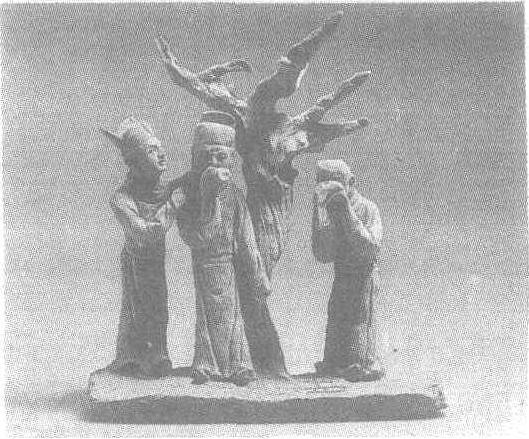 | 释义 | 砖雕田氏感荆金。高27厘米。山西省稷山县马村4号墓出土,山西省考古研究所藏。二十四孝故事之一。据说古时有田氏兄弟三人,父母死后决计分居,就在他们议论着要将庭院的紫荆树斫成三份平分时,树忽然自己枯萎了,长兄田真见状,幡然悔悟,遂以此现象为依据,向两个弟弟陈述分居的弊端,二弟深受感触,遂合财同住,树也重新复活。此画面所表现的就是兄弟三人在枯树前醒悟的情景:两个深受触动的弟弟一掩面痛哭,一捂嘴沉思,流露出痛悔之色,兄长田真则真挚地开导着弟弟。此砖雕有景有情,人物刻画生动传神,颇具意境。