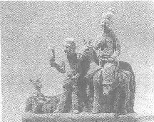 | 释义 | 砖雕鹿乳奉亲金。高25厘米。山西省稷山县马村4号墓出土,山西省考古研究所藏。二十四孝故事之一。传说,古代有个叫剡子的人父母年老体弱,俱患眼疾,并想饮鹿乳,于是剡子便身披鹿皮,杂于鹿群中以取得鹿乳。一天,他忽然遇上猎人,就在猎者误认剡子为鹿,举弓待射的刹那间,剡子以实情相告,方免一场悲剧。此画面表现的即是剡子遇猎人的情景:瘦小的剡子腿夹陶壶,坐于地上,仰脸正向猎人叙说扮鹿的原因。其面前两个高大魁梧的猎人,受了他的感动,一个立于马前沉思着,一个骑于马背,露出敬佩的神色。