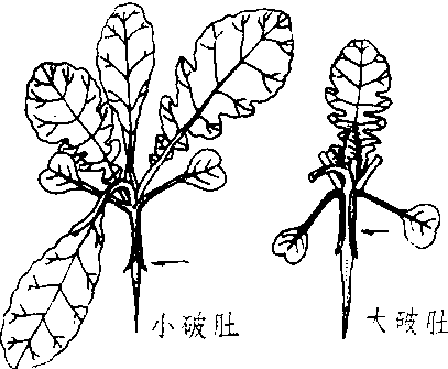 | 释义 | 破白见“破白合尖”。 破白cortical cleft of radish又称破肚。萝卜肉质根初生皮层破裂的现象。一般在播种后15~20天发生,它标志着萝卜幼苗期的结束和肉质根膨大期的开始。萝卜苗长到5~7片真叶时,主根形成层加速分裂生长,内部中柱组织因次生生长而迅速增粗,向外产生压力,而表皮及皮层却不再增大,造成表皮和皮层破裂、脱落现象。 此后植株生长加快。 要适时间苗、施肥、灌水,以满足肉质根迅速膨大生长的需要。