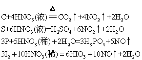 ❷具有还原性的非金属单质可被硝酸氧化,例如:
