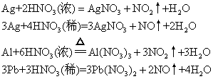 硝酸参加的主要氧化-还原反应: ❶硝酸几乎可以和一切金属作用 (除金、铂、铱等) ,例如: