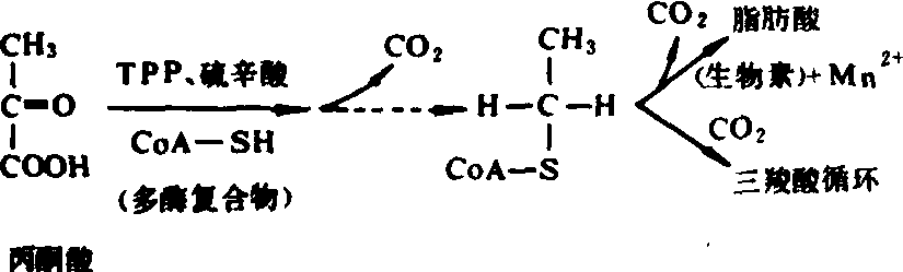 因为谷胱甘肽的水溶性较高,在植物新陈代谢过程中,较胱氨酸/半胱氨酸氧化还原体系起着更重要的作用。 铁氧还蛋白是一种重要的含硫基化合物(非血红素铁、硫蛋白质),它参与亚硝酸还原、硫酸盐的还原、分子态N2的固定、氨的同化以及光合作用等过程。在无机养分转化为有机物的过程中,当有铁氧还蛋白存在时,都很容易进行。 辅酶A与乙酸反应时,形成乙酰辅酶A。它除了参加三羧酸循环,促进有氧呼吸外,还可形成脂肪酸,参与脂肪的代谢过程(图2)。