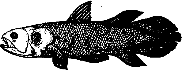 图 2 矛 尾 鱼 辐鳍亚纲是现代最繁盛和最高等的一大群鱼类,因其骨质鳍条呈辐射状排列而得名;上下颚由前颚骨、上颚骨和齿骨等构成,故又称真口亚纲。体被骨鳞、硬鳞或裸露无鳞; 偶鳍基部无肉叶和骨质中轴; 无内鼻孔和泄殖腔; 大多为正形尾。根据鳍及鳞片的结构,肛门和泄殖孔的位置,鳔及某些骨片的有无,以及鳃器构造、口的性状、个体发育型等方面的差异,可将辐鳍亚纲分为9总目,36目。中国有8总目,26目。