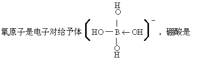 这与硼化合物缺电子结构特点有关,硼酸中硼原子可作为电子对接受体与一个OH-根结合,OH-根中