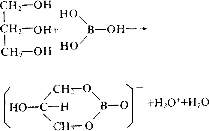 典型的路易斯酸。当硼酸中加入甘油 (丙三醇)或甘露醇[CH2(OH)(CHOH)4CH2OH]时,其酸性增强,这是因为硼酸与甘油结合生成配阴离子后,将H+推到外界,易于电离: