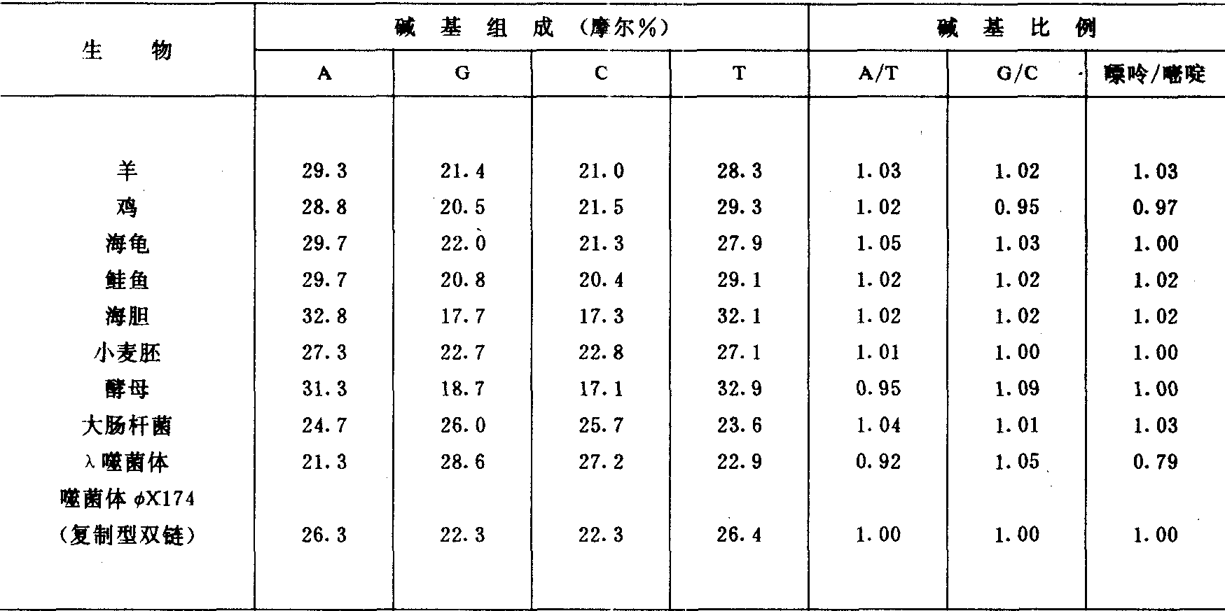 | 释义 | 碱基比率jianjibilu又称碱基组成。指核酸分子中4种主要碱基的相对比例(摩尔百分比)。本世纪40年代末期,E.查加夫(Erwin Chargaff)等在研究DNA结构时发现:不同物种DNA的4种主要碱基的比例不同,但彼此相关。查加夫和以后的学者经大量研究后得出以下结论:(1)同一生物不同组织的DNA具有相同的碱基组成;(2)不同物种DNA的碱基组成不相同;(3)生物DNA的碱基组成不因年龄、营养状况或环境的变化而改变;(4)任何生物DNA中的腺嘌呤数等于其胸腺嘧啶数(A=T);鸟嘌呤数等于胞嘧啶数(G=C)。从这种关系还可引出一个规律,即嘌呤总数等于嘧啶总数(A+G=T+C)。在下表中列出了一些生物DNA的碱基组成。 不同生物DNA的碱基组成