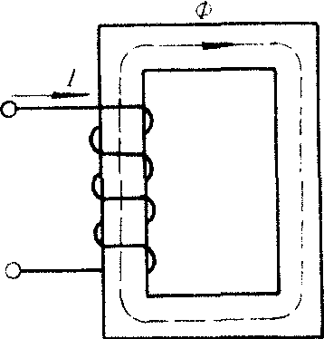 式中ε是电源电动势;R是电阻,R=pl/E;σ是电阻材料的电导率;l是电阻线的长度;S是电阻线的横截面积。对于一个忽略漏磁(见磁路)、由软磁材料(见铁磁质)和外加通电线圈构成的简单闭合磁路(如图2所示),把介质存在时的安培环路定理用于铁心中的一条闭合曲线(图中的虚线),则有∮LH·dl=NI,式中H是磁场强度,I为线圈中的电流,N为线圈匝数。积分后得Hl=NI,或