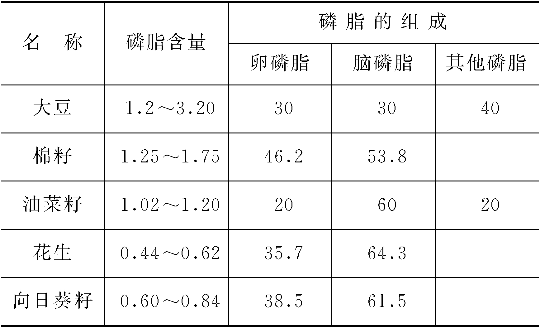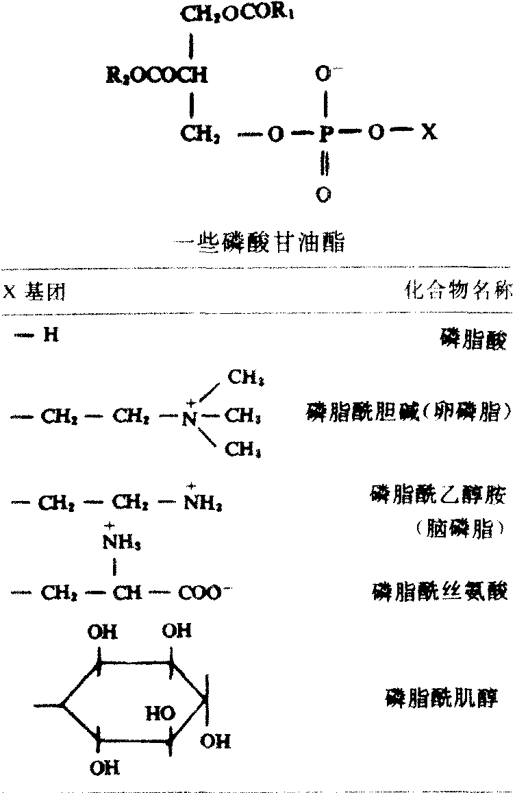 磷脂一类含磷的脂类物质。按照其组分有:1.比较简单的磷脂,如磷脂酸;2.含氮碱基的或其他基团的磷脂,如卵磷脂和脑磷脂等;3.非甘油酯的磷脂,如神经磷脂等。 磷脂phospholipid具有磷酸二酯结构的类脂化合物。磷酸既和醇又和其他含羟基的化合物成酯。根据醇的不同而分为两类: 磷脂动物体内的磷脂含量较高,脑中含3.7%~6.0%,骨髓中含有6.3%~10.8%,肝脏中含1.0%~4.9%,蛋清中含有8%~10%。豆类植物磷脂含量高达3.2%。几种油料种子中磷脂组成及含量见下表(单位:质量分数%):