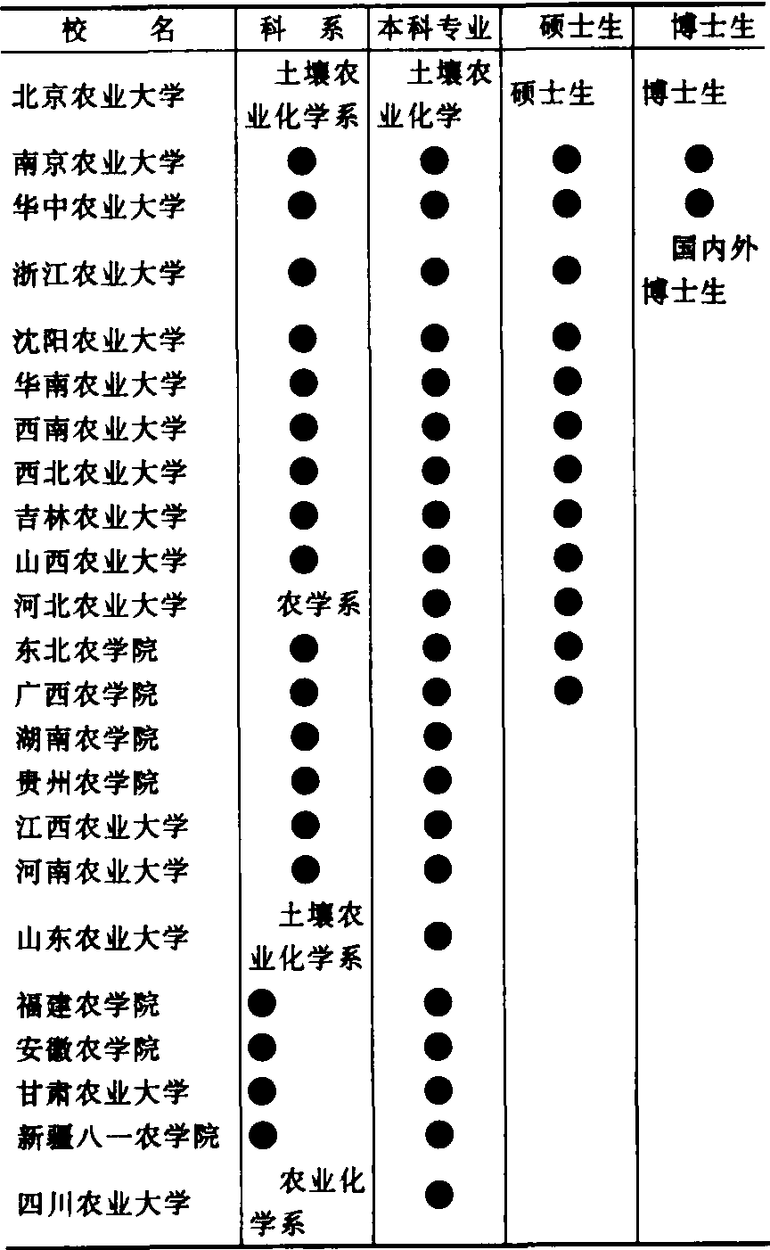 | 释义 | 中国农业化学教育education of agrochemistry in China中国在1949年以前,全国已有几所综合性大学(如金陵大学、浙江大学等)的农学院设有农业化学专业。教学内容侧重于农产品加工化学、食品营养化学和发酵化学等。1952年全国院系调整时,农业化学专业并入工科院校;1956年农业院校设置土壤农化专业,正式招生。至1989年,全国37所高等农业院校中有23所院校培养农业化学专业人才。据1992年的统计,全国培养农业化学硕士生的高等农业院校有13所,培养博士生的院校有4所。浙江农业大学还培养外籍博士生。此外,中国科学院南京土壤研究所和中国农业科学院土壤肥料研究所也培养农业化学硕士和博士研究生。