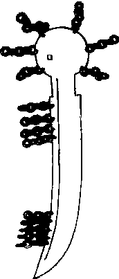 | 释义 | 神刀满族萨满祭祀神具。亦称萨满刀。铁片制,清宫廷与民间均有藏品。沈阳故宫所藏铁神刀为乾隆年制,刀长74.7公分,刀上宽6.5公分,把宽10.2公分,无护手,把端呈圆形,上附铁连环6串,刀背上下附铁连环9串,每串4环。为朝祭时萨满所用之刀,请神和求福神之法器。 神刀即萨满刀,铁片制,清宫廷与民间均有藏品。沈阳故宫所藏铁神刀为乾隆年制,刀长74.7公分,刀上宽6.5公分,把宽10.2公分,无护手,把端呈圆形,上附铁连环6串,刀背上下附铁连环9串,每串4环。为朝祭司祝祝祷所用铁神刀,请神和求福之法器。
