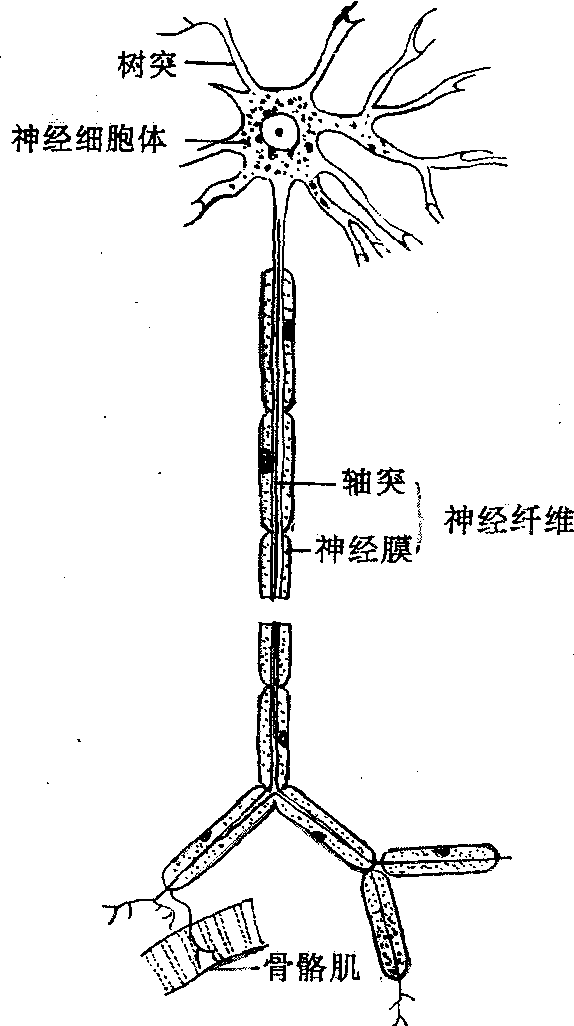 | 释义 | 神经原shenjingyuan能接受刺激,传导神经冲动(兴奋在神经上的传导为神经冲动)的细胞,又称神经细胞。神经原与神经胶质细胞一起构成了神经组织,是神经组织的基本单位。它存在于脑、脊髓和周围神经系统,由神经细胞体(简称胞体)和突起两部分组成(见图)。胞体具有和其它细胞一样的结构,它的大小不同,形态各异,有圆形、锥形、棱形、星形等。胞体中央有一大而圆的核。细胞质内含有丰富的尼氏体和纵横交错排列成网的神经原纤维。胞体为神经原营养和代谢的中心。突起分为树突和轴突两种。树突短而分支多,每个神经原有一个或多个,其主要功能是接受刺激,将神经冲动传入细胞体。轴突比较长,一般只是末端有分支,形成轴突终末。一个神经原通过轴突及其分支可和若干个其它细胞相联系。轴突的基本功能是将神经冲动由细胞体传到末梢,引起末梢释放化学物质,进而影响与它联系的各种细胞的生理活动。轴突或长的树突及套在外面的髓鞘(由神经胶质细胞形成)共同组成了神经纤维。许多神经纤维常常集合成束,就成为神经。如坐骨神经、视神经、嗅神经等。