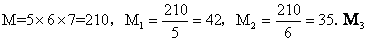 =210/7=30。❶42≡2mod5,3≡3(mod5),因此126≡6≡1 (mod5), 取M′1=3。