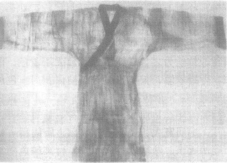 素纱禅衣 禅衣即一种单层的薄长袍,是秦汉时期一般地主和贵族穿用的常服。“禅”即单的意思,故又称为“单衣”。其质料,或用布帛,或用薄丝绸。它源于先秦时期的深衣而又有所不同:深衣是由“衣”和“裳”缝合而成,禅衣则“上下相通,不别衣裳”。这样既避免了深衣过于臃肿的毛病,又可以节省用料,是古代服装发展的一个进步。西汉中期,有人为了行动方便,将禅衣截短,以利作战。后禅衣遂逐渐变为武官的专用衣着。至东汉,禅衣已完全由一般常服变为武职官员的正式制服。 |