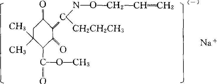 | 释义 | 禾草灭alloxydimsodium又称枯草多。内吸、选择性除草剂。化学名称为2-(1-稀丙氧氨基丁叉)-5,5-二甲基-4-甲氧羰基环己烷-1.3-二酮钠盐。化学结构式如下。纯品为无臭白色结晶,熔点>185.5℃(分解)。25℃蒸气压<133.322×10-6Pa,易溶于水、二甲基甲酰胺、甲醇,微溶于丙酮、环己烷和二甲苯,易吸湿潮解,对日光不稳定。可通过茎、叶和根吸收,传导至分生组织,对禾本科杂草的细胞分裂有抑制作用。适于甜菜、大豆、棉花、花生、油菜、马铃薯、烟草、蚕豆、豌豆、蔬菜田及果园使用,防除稗草、马唐、野燕麦、看麦娘等禾本科杂草。苗后茎叶处理。对人、畜低毒,大白鼠急性口服LD50>2 200 mg/kg,兔急性经皮LD50>2 000 mg/kg,对水生动物低毒。