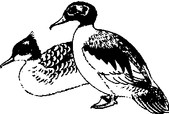 | 释义 | 秋沙鸭merganser鸟纲,雁形目(Anseriformes),鸭科(Anatidae),秋沙鸭属各种的通称。喙狭长侧扁,喙甲大,锐而具钩,头颈羽延长形成羽冠,区别于一般鸭类。善于潜泳啄取鱼类,有时兼食水生昆虫及其幼虫,体型因种类而异,羽色亦多变化。在中国大多于长江流域或更南地区越冬,而在北方繁殖。如普通秋沙鸭(Mergus merganser merganser),是秋沙鸭中最大的一种,体长60 cm以上。斑头秋沙鸭(M.albellus)体型小,仅40 cm,喙形亦短。为狩猎鸟类。