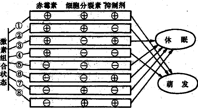 植物激素调控种子休眠与萌发的模式图 种子休眠的解除 ❶低温湿润处理:已知有100种以上的植物,特别是一些木本植物种子,如梨、苹果、榛、山毛榉、白桦、赤杨等要求低温、潮湿的条件以解除休眠。通常将种子埋于湿砂中置于1~10℃经两天至数月不等(因植物种与品种而异),即能有效地解除其休眠。低温湿砂层积期间,抑制剂含量逐渐下降,而赤霉素与细胞分裂素却显著增加,对于双重休眠的种子,如铃兰、大花延龄草,需经两次低温处理。第一次低温解除胚根休眠,在常温下生长直到胚茎伸出子叶鞘时再给予第二次低温处理,以解除上胚轴休眠。 ❷变温处理:吸涨种子经受15~45℃之间的变温处理,变幅在10~20℃之间可破除种子休眠,提高萌发率,如酸模。 ❸照光处理: 如藜、莴苣、云杉、水浮莲、芹菜和烟草的种子吸涨后照光可解除休眠。 ❹激素处理:如赤霉素、激动素、乙烯利、梭壳孢菌素、酞酰亚胺、cotylenin E等均能解除种子休眠,促进萌发。GA4+7在解除种子休眠中特别有效,能解除许多植物种子的初生休眠、次生休眠并能阻止次生休眠的诱发,尤其当GA4+7与其他激素或生长调节剂 (如激动素、乙烯利)联合使用时效果更佳,通常将这些药剂溶于无水丙酮中,通过短时间(1小时左右)浸种。常用浓度GA为1毫摩尔/升,激动素为0.1毫摩尔/升,乙烯利为3毫摩尔/升。 ❺腐蚀或摩损种皮处理:适用于有坚硬种壳的种子,用砂子与种子摩擦,或将种子用浓硫酸处理2分种~2小时后立即用水漂清。 ❻清水漂洗: 将种子浸入水中,流水更佳,使抑制物渗漏出来。 ❼呼吸抑制剂、氧化剂、含氮化合物、巯基化合物、麻醉剂处理。 种子休眠seed dormancy活种子在适宜的萌发条件(温度、水分和氧气等)下仍不能发芽的现象。是植物重要的适应特性之一。根据种子休眠产生的时间可分为初生休眠(收获时即已具有的休眠现象)和次生休眠(原来无休眠或解除休眠后的种子由于高湿、低氧、高二氧化碳、低水势或缺乏光照等不适宜环境条件的影响诱发的休眠)。种子休眠的原因可归为两大类:第一类是胚本身的因素造成的,包括胚发育未完成;生理上未成熟;缺少必须的激素或存在抑制萌发的物质。用低温层积、变温处理、干燥、激素处理等方法可解除休眠。第二类是种壳(种皮和果皮等)的限制造成的。包括种壳的机械阻碍、不透水性、不透气性以及种壳中存在抑制萌发的物质等原因。用物理、化学方法破坏种皮或去除种壳即可解除休眠。 |