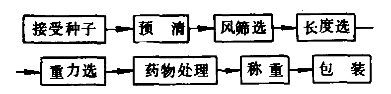 工艺流程与种子加工厂 实际生产使用中往往是多台不同类型的机器连成流水线顺序作业,以获取最佳加工效果。不同作物种子有特定的工艺流程,有些流程中还有烘干、除芒等工序,其基本工艺流程见图1。许多国家又根据这种由单机、机组、成套设备逐步发展起来的固定工艺流程,建立了种子加工厂。