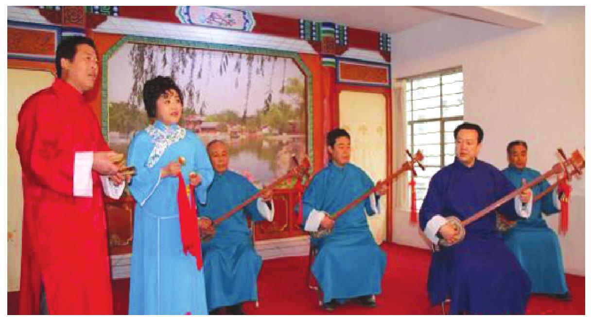 | 释义 | 秦安小曲曲艺。国家非物质文化遗产。秦安小曲分“花调”和“老调”两大类型。“花调”的词曲格式及调式调性等方面都类似眉户调。清末由陕西传入秦安。“老调”的词曲格式、演奏演唱形式以及调式调性和流传情况,与“花调”不同,“老调”的词曲结构严谨,唱词是长短句体。每个曲牌的字数,每句的字数都形成一定的格式,每段不同内容的唱词都得按固有的曲调格式填词。其曲调节奏顿挫有致,旋律迂回曲折,音域宽广,色彩明朗,典雅细腻,委婉悠扬。秦安小曲共有 40 多个曲牌,主要有“越调”“越尾”“穿字越调”“四六越调”“背宫”“背尾”“单背宫”“三道蔓”“大五更”(雁落沙滩)“小五更”“降夜香”“软环儿”(跌落)“三字头”“上暑落”“下暑落”“诗篇”“荡调”“岔儿”“混江龙”“莲花”“双莲花”“道音”“禅音”“勾牌子”“哭调勾牌子”“乐一乐”“男寡夫”“琼竹调”“赶船调”“马头调”“进兰房”“一串铃”“岗调”“太平年”“割韭菜”“十里亭”“赏月光”“满江红”等曲牌。曲牌分两大类:一类是音乐较短的中小型曲牌(艺人习惯把这类曲牌叫“小调”曲牌),已整理 38 个;另一类是音乐较长的大型曲牌(艺人习惯称此类曲牌为“大调”曲牌)。大型曲牌只有勾、平、当、挂四大曲牌,已经很少有人会唱,仅存“赏月光”“满江红”。一个曲牌一般由一人演唱,可从头唱到尾,也可一人唱一段,另外一个伴奏人接着唱另外一段,没有多人合唱的演唱形式。演唱时演唱者手持“摔子”敲击节奏,只唱无白。唱词内容有对人物登场前的交代,场景、人物外貌或其情绪的描述,有登场人物的对话,有人物内心的独白,有对某一故事的叙述或对事件的评述,等等。秦安小曲除演唱者敲击“摔子”伴奏外,通常有一人弹三弦随腔伴奏,后来又增加了板胡、二胡等乐器。
