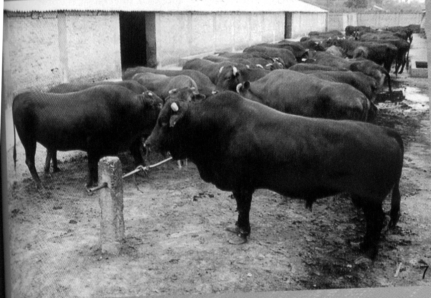 秦川牛 秦川牛亦称“关中牛”,形成于西汉时代的我国优良役用黄牛品种之一,由古代的𤚩牛发展而来。关中曾长期是封建皇朝的京畿所在, 从皇室牧场到王公贵族的庄田都饲养有大量良种牛羊,以供肉役所需。今渭水下游的平原地区十多县为秦川牛的中心产地。其体格之大,体质之壮实,实居于全国牛种首位, 而且具有役肉兼用的体型。其外型特征:毛色以红栗色和红褐色最多, 眼圈和鼻镜呈粉红色或浅肉色;角较短,一般向外下方或向右方弯曲; 公牛头较粗重, 颈上缘丰厚隆起;垂皮很发达,自颌下延伸到胸前;全身结构以前驱更为发育,肩斜多肉,髻甲销高而移向平直的背部, 胸廓深广;前肢显得粗短,四肢关节强大,后肢较多外弧肢势,蹄大坚硬。其役用性能很强,公牛每日可耕4~5亩地,母牛则3~5亩地。每头牛通常能在一个耕作期间负担旱地30亩, 或水田20亩左右。用于牵引铁轮大车 (车重约300公斤)载重500~750公斤, 在平坦乡村大道上能日行30~40公里。 秦川牛我国优良畜种。因产于八百里秦川而得名。是著名的役肉兼用牛。体格高大,毛色紫红,前躯发达,肩峰略高,具有挽力大、耐力强等特点。肉质细嫩,出肉率高,净肉率在50%以上。主要分布在关中的扶风、岐山、凤翔、乾县、礼泉、兴平、武功、秦都、富平、蒲城、大荔、渭南、临潼等13个县区。 |