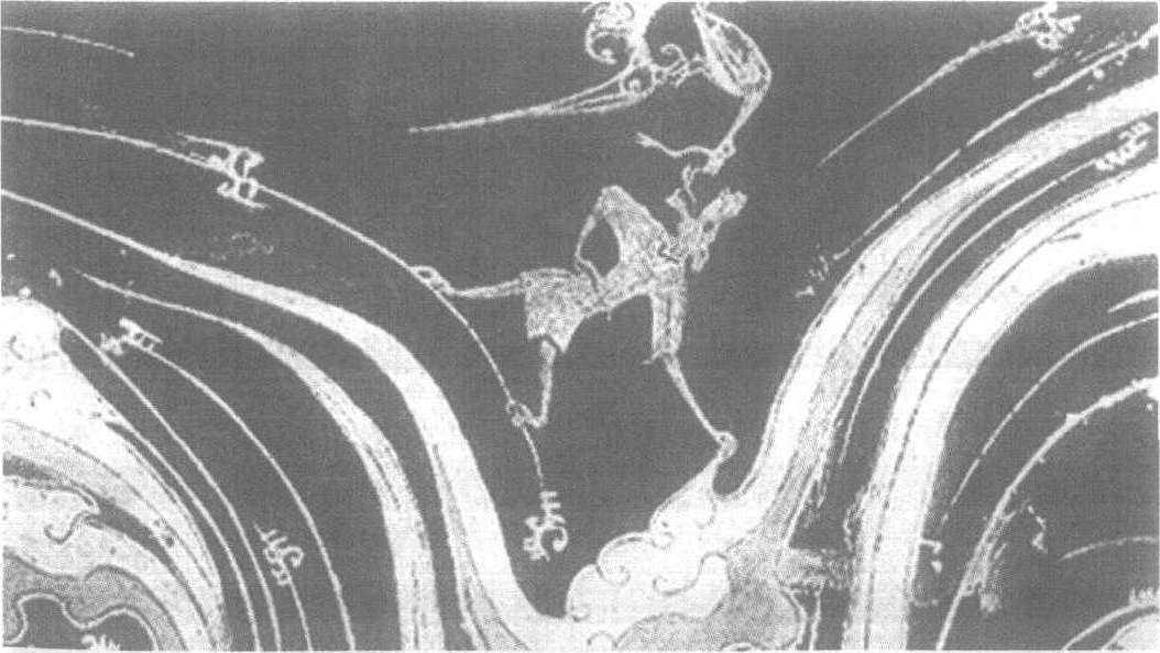 | 释义 | 秦汉漆画·漆棺画 1972年至1974年,湖南省博物馆和中国科学院考古研究所在长沙市东部,先后在马王堆发掘了三座西汉早期墓,墓主为长沙国丞相轪侯利苍及其妻刘氏,其子利苍。按发掘时间先后,定为一号墓、二号墓、三号墓。其中 一号墓主为刘氏,50岁左右,尸体安葬距今2100多年不朽。棺椁完好如新,漆棺画绚烂多彩。画工利用漆本身所具有的光润流动的特性,在棺板上画了充满奇异幻想的神怪。其中有怪兽食蛇、怪兽训豹、豹与猫头鹰、羊头怪射鹤、怪兽拉鹤、怪兽奏乐、羊头怪骑鹤、人面怪骑鹿、怪兽斗牛、怪兽食羊、鹤鸣、怪兽抓鸟、兽斗等等,形象非常丰富。形象间穿插活动的流云作衬托,有如大海翻滚的波涛,充满了动感和神秘色彩。