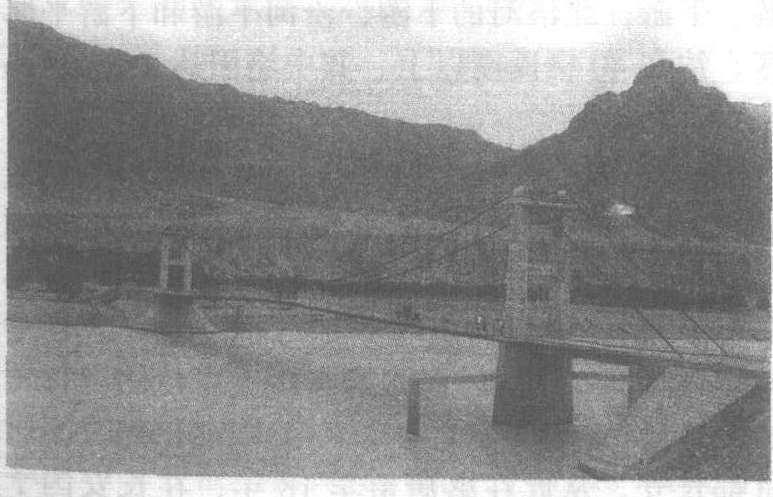 楼阁式的钢索悬浮吊桥。位于青海省循化撒拉族自治县城北800米黄河上。上距伊麻目黄河桥10千米左右。1979年12月25日竣工。结构形式具民族特色,塔楼门高约12米,两侧各以两根直径50毫米加一根直径30毫米的钢缆牵拉。索长151米,桥长124米,载重4吨。