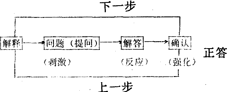 以操作条件作用的理论为基础、使用程序教材的一种自动的学习方法。一般作法是把学习材料分成许多小的步子,按一定顺序排列成便于学习的程序。学习者对每一步所提出的问题作出反心,确认反应正确后再进入下一步。通过一步步的累积而达到目标。学习程序可由程序课本或教学机器来提供,其基本过程如图示: